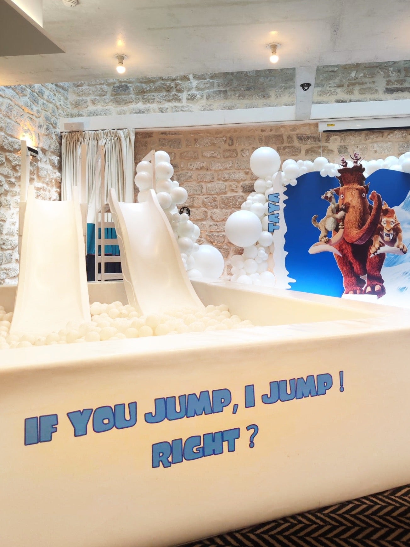 Un espace soft‑play spectaculaire : une piscine à balles avec toboggan(s) pour des glissades en continu. Parfait pour Family Day, arbre de Noël, inauguration, centres commerciaux, salons et événements corporate.