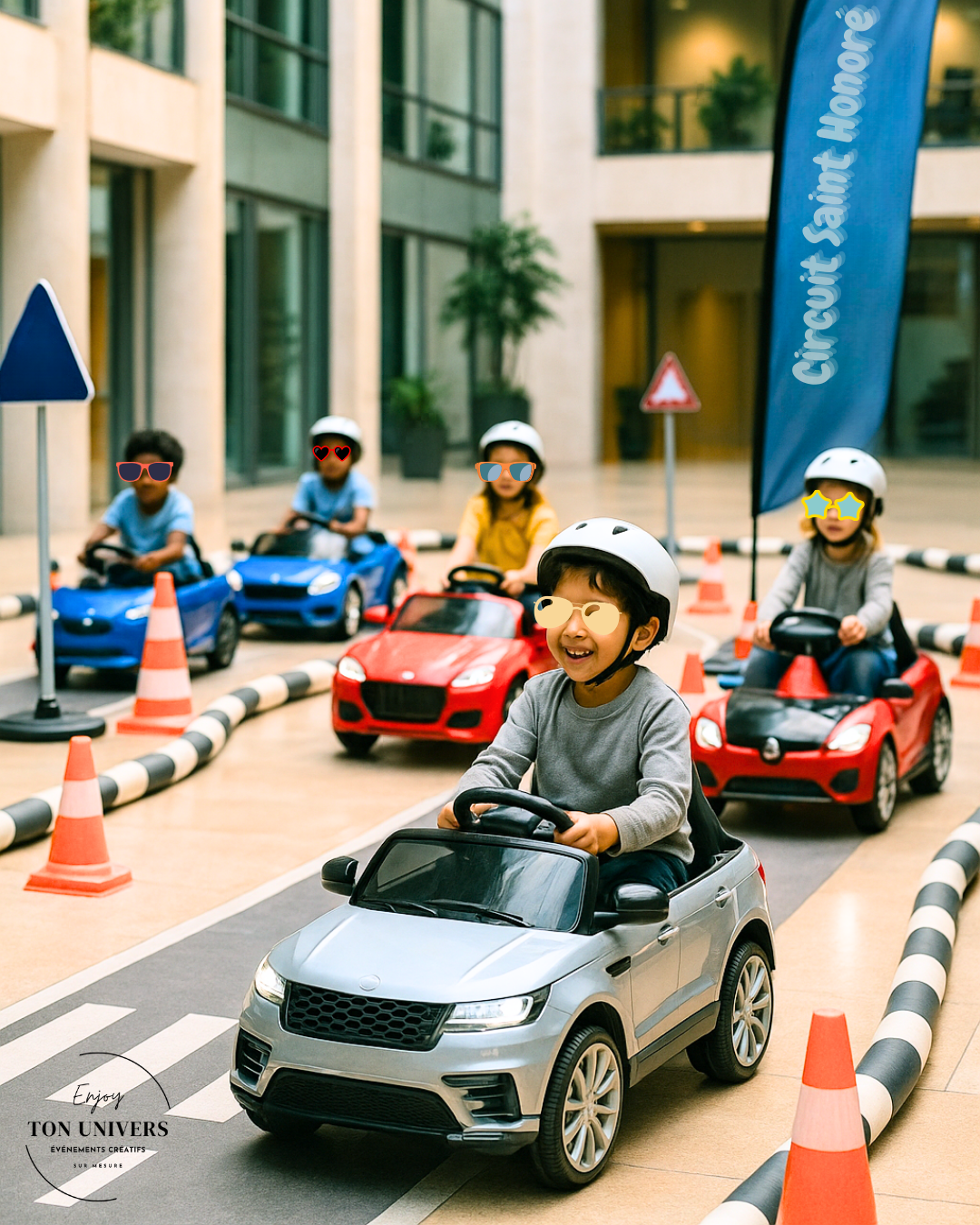 Une piste de conduite immersive et ultra-sécurisée où les enfants deviennent pilotes le temps d’une session. Idéal pour Family Day, arbre de Noël, portes ouvertes, inauguration, centre commercial ou événement corporate.